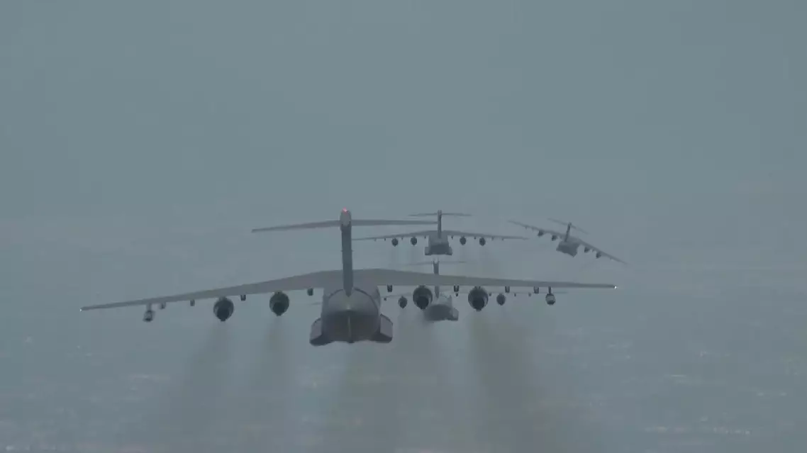 China's Y-20 transport aircraft conducts multi-aircraft training in challenging conditions