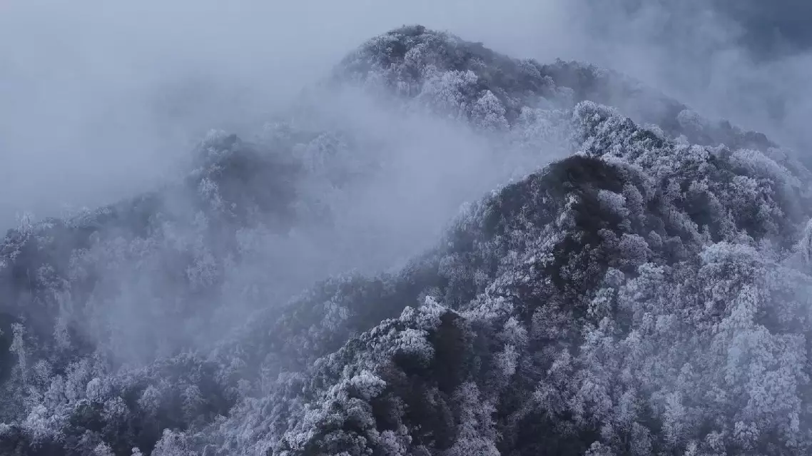 The Yueliang Mountain is located in Jiuqian Town at an altitude of over 1,300 meters. The rime scenery stretches for dozens of kilometers, creating a breathtaking winter landscape that attracts visitors wandering and taking photos.