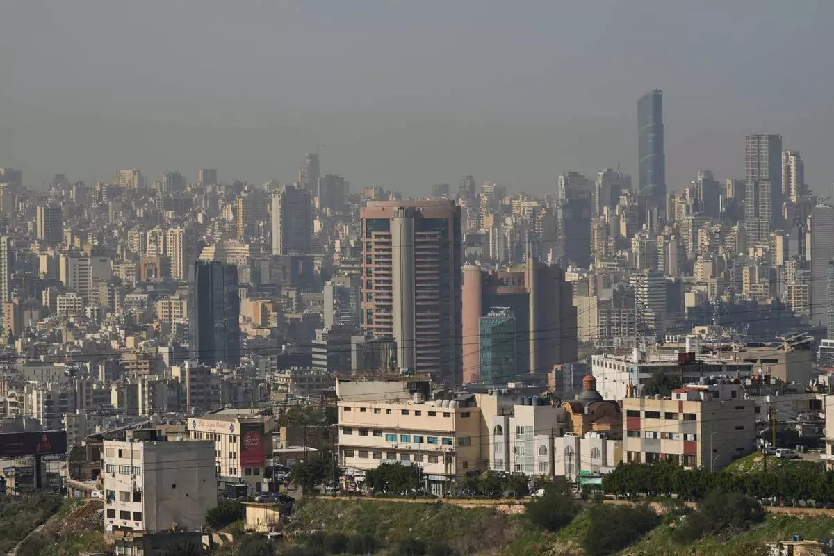 The Habtoor Hotel, center, is seen along Beirut's skyline, Lebanon, Monday, Jan. 26, 2026. (AP Photo/Hassan Ammar)