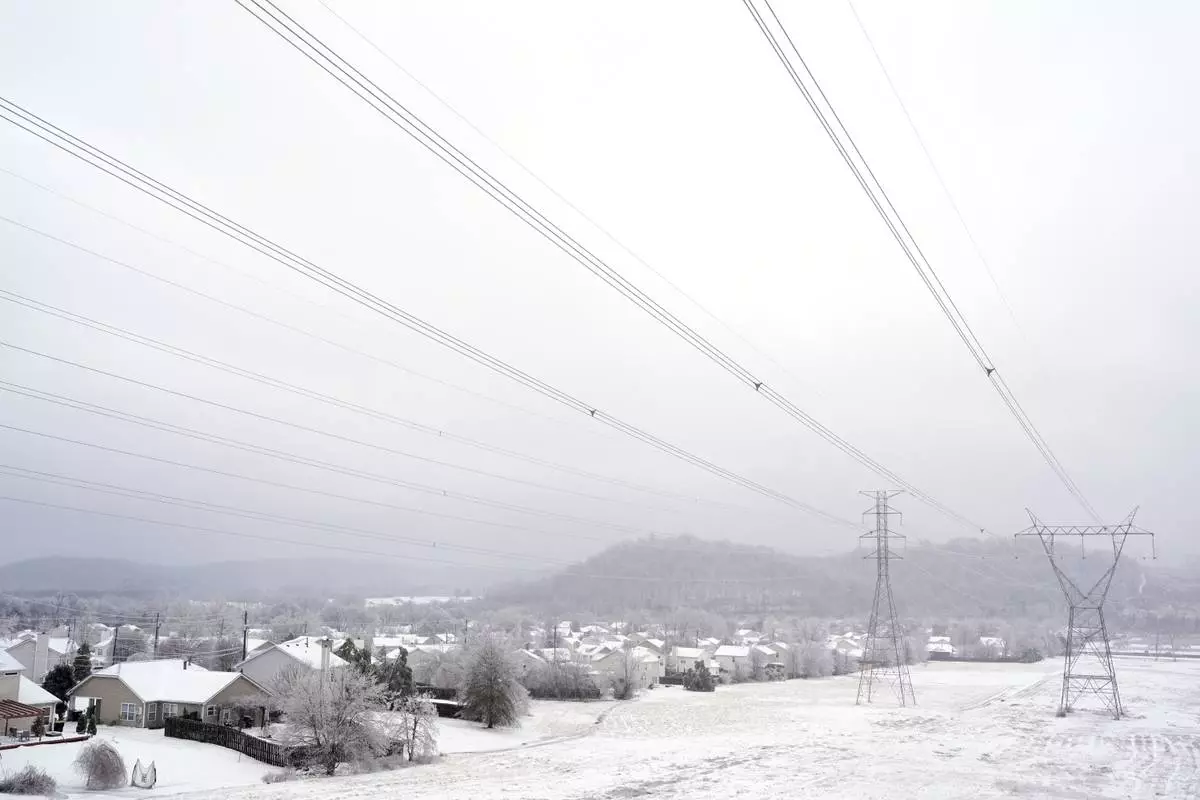 Power lines are seen during a winter storm Sunday, Jan. 25, 2026, in Nashville, Tenn. (AP Photo/George Walker IV)