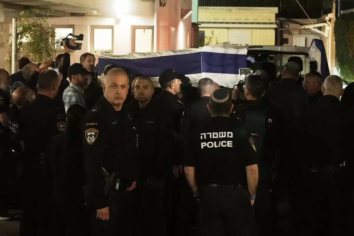 The coffin with remains of Israeli hostage Ran Gvili, last to be recovered from Gaza, arrives to the Abu Kabir Forensic Institute in Tel Aviv, Israel, Monday, Jan. 26, 2026. (AP Photo/Mahmoud Illean)
