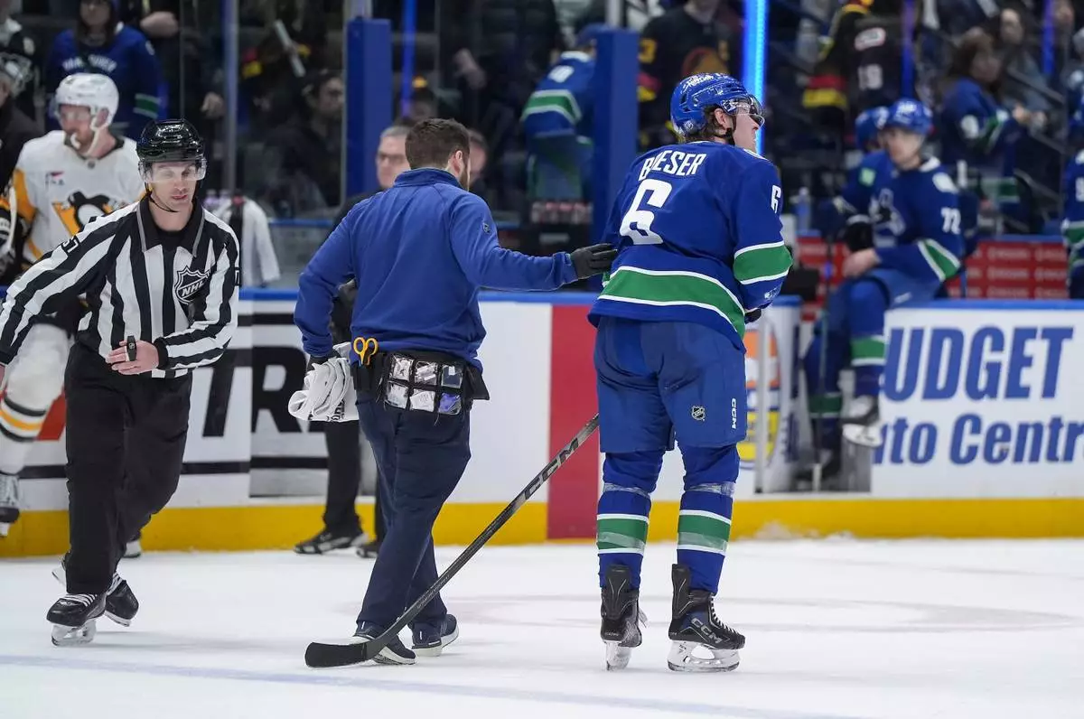 Boeser caught an elbow to the head from Pittsburgh's Bryan Rust in the final seconds of the game while stationed at the top of the Penguins' crease and crumpled to the ice.