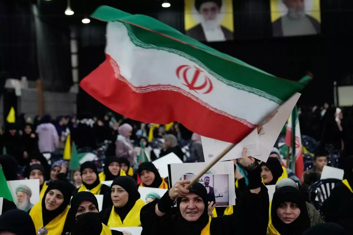 A Hezbollah supporter waves an Iranian flag during a rally to show their solidarity with the Iranian government, in the southern suburb of Beirut, Lebanon, Monday, Jan. 26, 2026. (AP Photo/Hussein Malla)