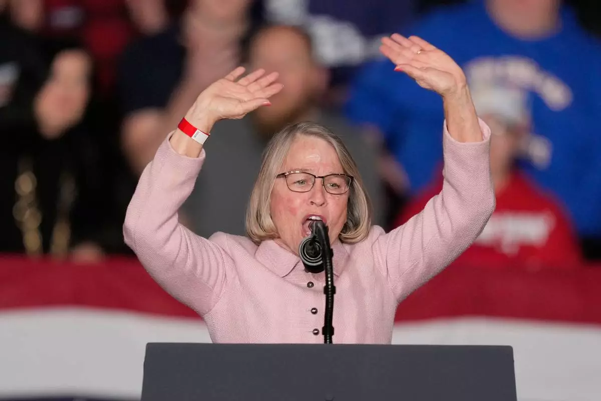 Rep. Mariannette Miller-Meeks, R-Iowa, speaks before President Donald Trump arrives at a rally, Tuesday, Jan. 27, 2026, in Clive, Iowa. (AP Photo/Charlie Neibergall)