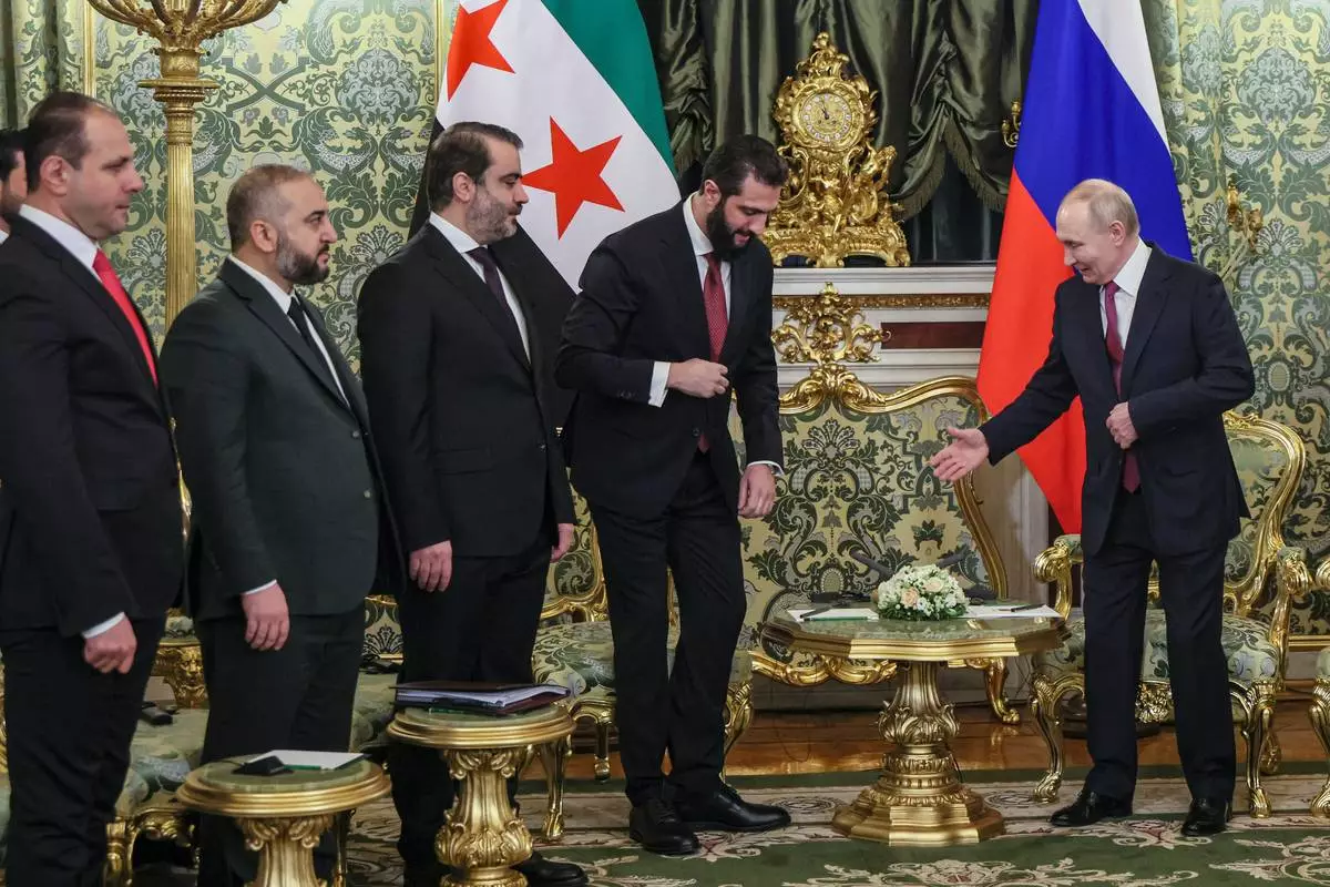 MOSCOW (AP) — Syria’s interim President Ahmad al-Sharaa visited Moscow on Wednesday for the second time in less than four months, and Russian President Vladimir Putin emphasized his readiness to help the country rebuild its war-battered economy.