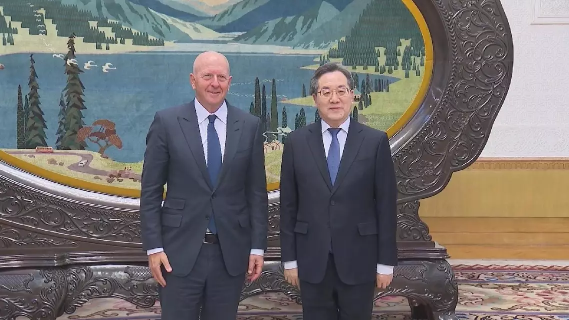 Vice Premier Ding Xuexiang met with David Solomon, chairman and CEO of Goldman Sachs Group, in Beijing on Wednesday.