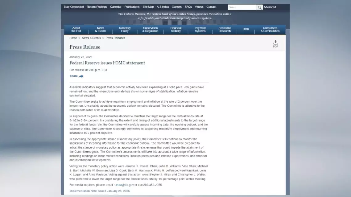 Of the 12 FOMC members, 10 voted for keeping the rate unchanged. Stephen Miran and Christopher Waller voted against the action, preferring to lower the interest rate by 25 basis points at the meeting.