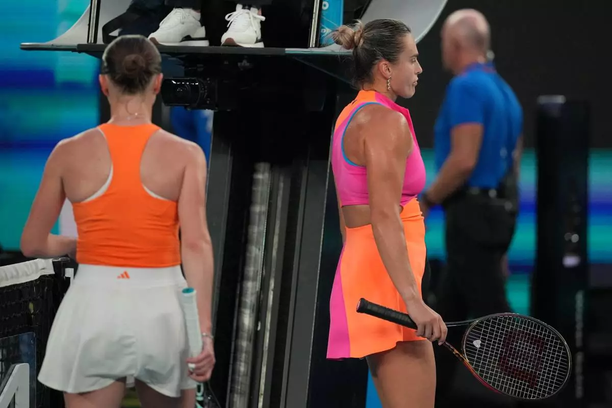 MELBOURNE, Australia (AP) — Not even a point penalty for hindrance slowed Aryna Sabalenka's run to a fourth consecutive Australian Open final.