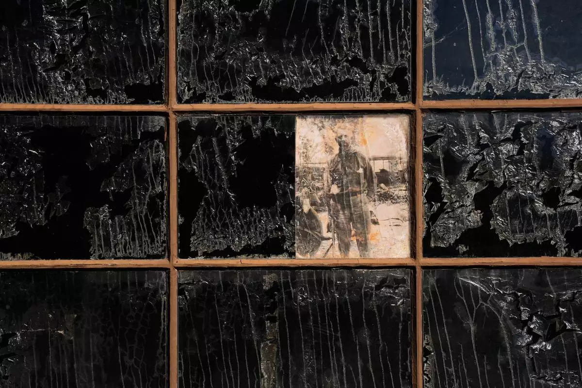 A picture of Albert Johnson is on display in a window at Scotty's Castle, Friday, Jan. 23, 2026, in Death Valley National Park, Calif. (AP Photo/John Locher)