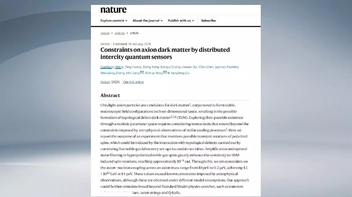 The team has published the paper, titled "Constraints on axion dark matter by distributed intercity quantum sensors," in the international academic journal Nature on Thursday.