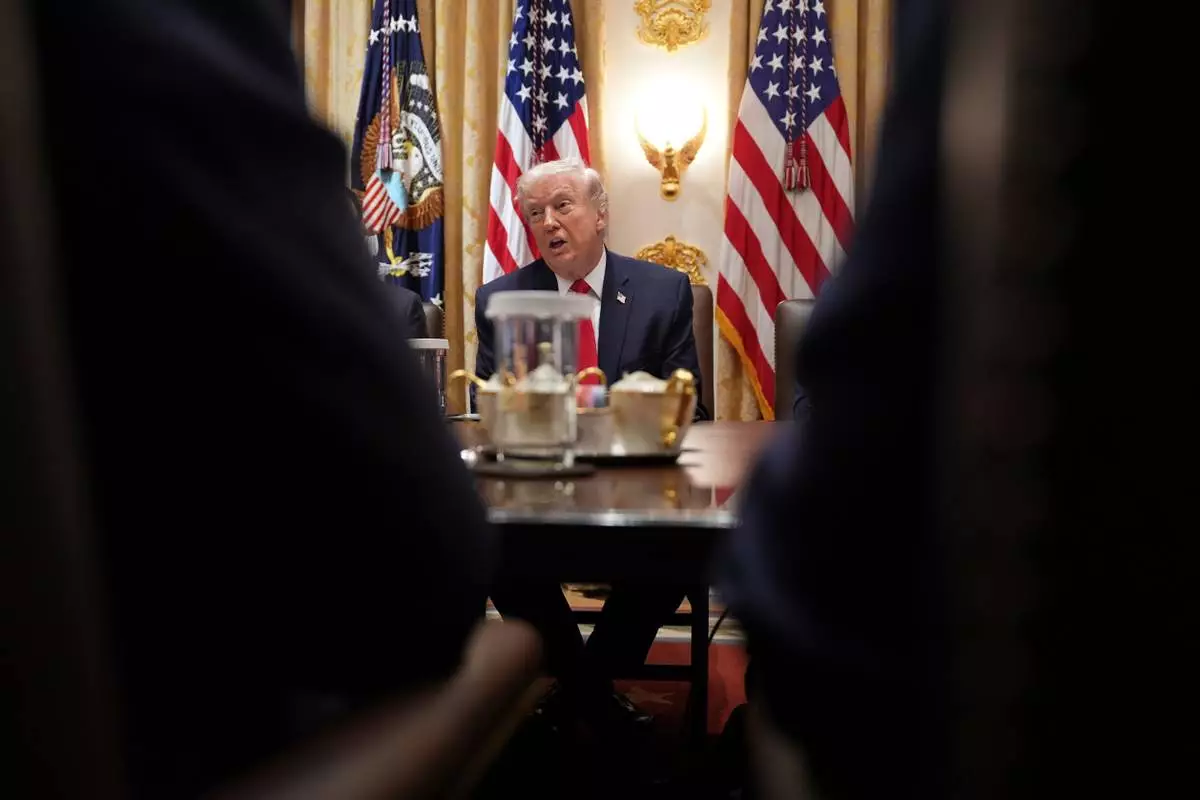 Then Trump closed the meeting, prompting White House handlers to usher the press out despite reporters yelling out questions.