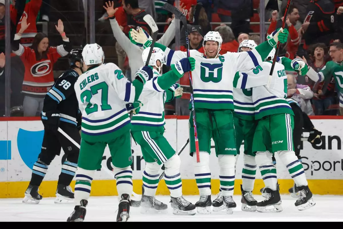 With three late goals, the Hurricanes became the first team in more than 30 years and third overall to rally from two goals down in the final two minutes to win in regulation, beating the Utah Mammoth 5-4.