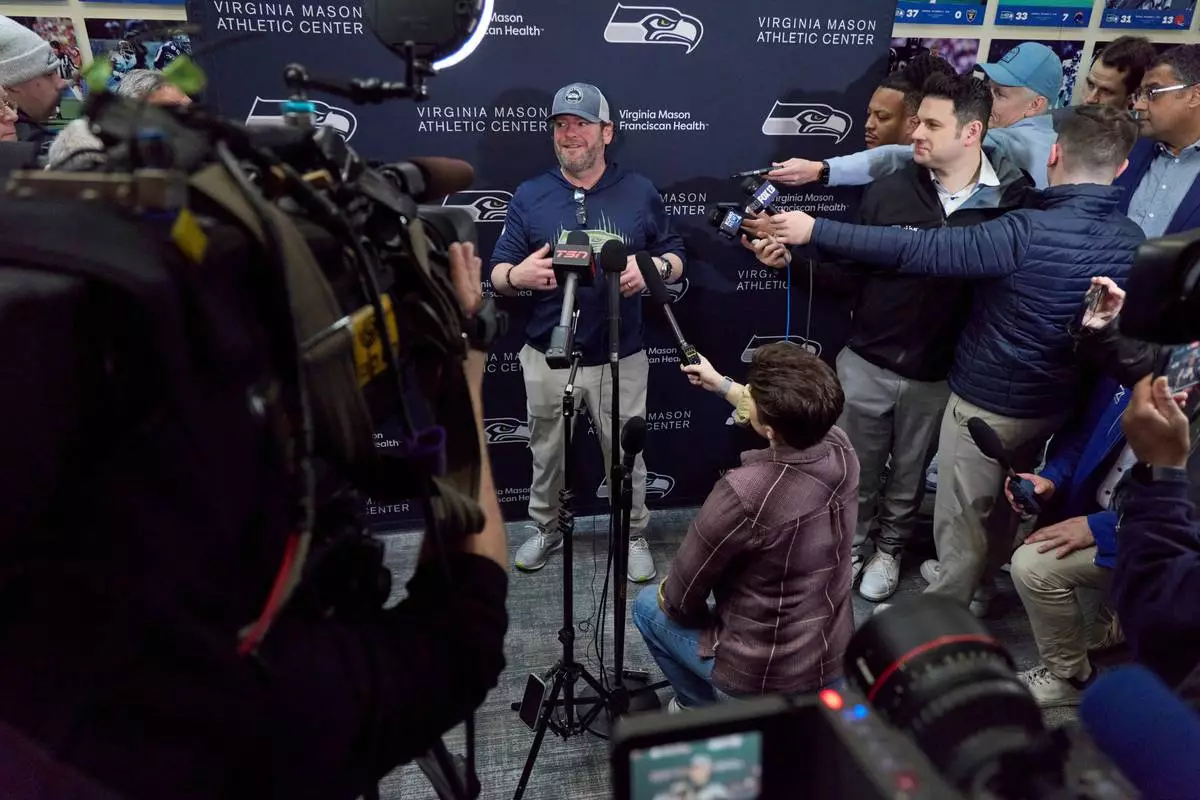 Seattle Seahawks general manager John Schneider speaks during a news conference at the NFL football team's facilities ahead of Super Bowl 60, Thursday, Jan. 29, 2026, in Seattle. (AP Photo/John Froschauer)
