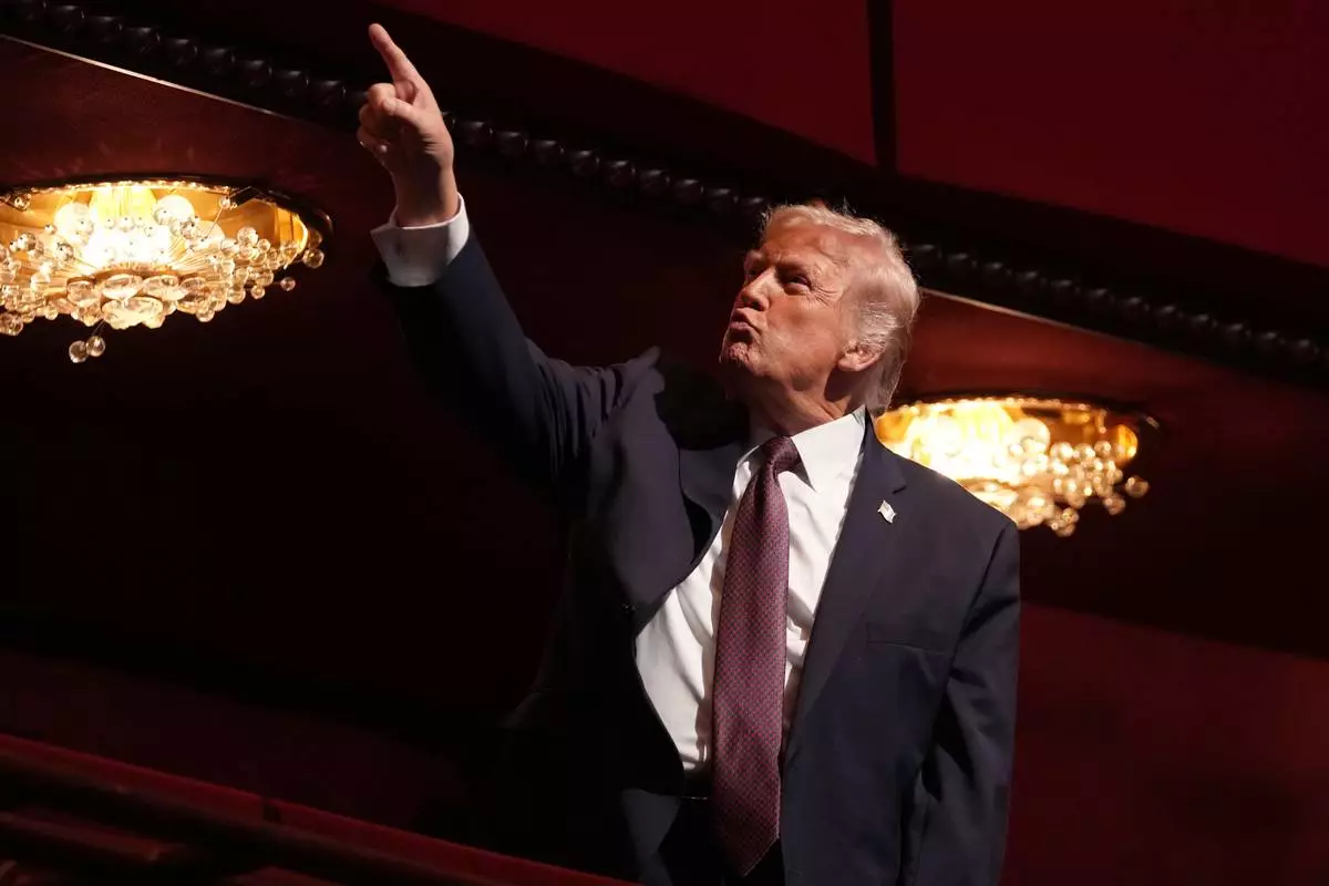 President Donald Trump gestures before the premiere of first lady Melania Trump's movie "Melania" at The John F. Kennedy Memorial Center For The Performing Arts, Thursday, Jan. 29, 2026, in Washington. (AP Photo/Allison Robbert)