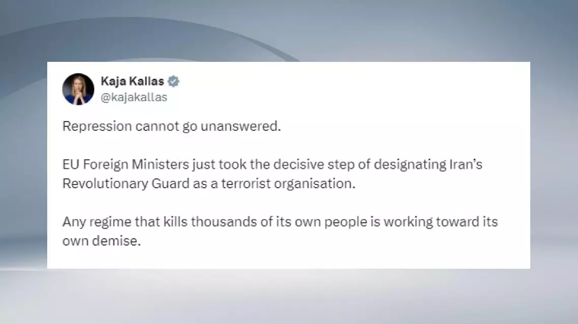 Foreign ministers of the EU have taken the decisive step of designating IRGC as a terrorist organization, EU High Representative for Foreign Affairs and Security Policy Kaja Kallas said Thursday on X.