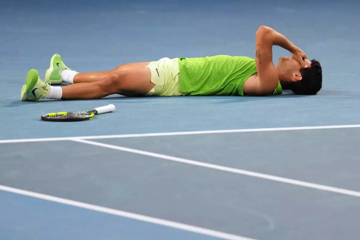 MELBOURNE, Australia (AP) — Carlos Alcaraz endured cramps and injury before fending off Alexander Zverev in an epic, momentum-swinging five-setter Friday to become the youngest man in the Open era to reach the finals of all four Grand Slam events.