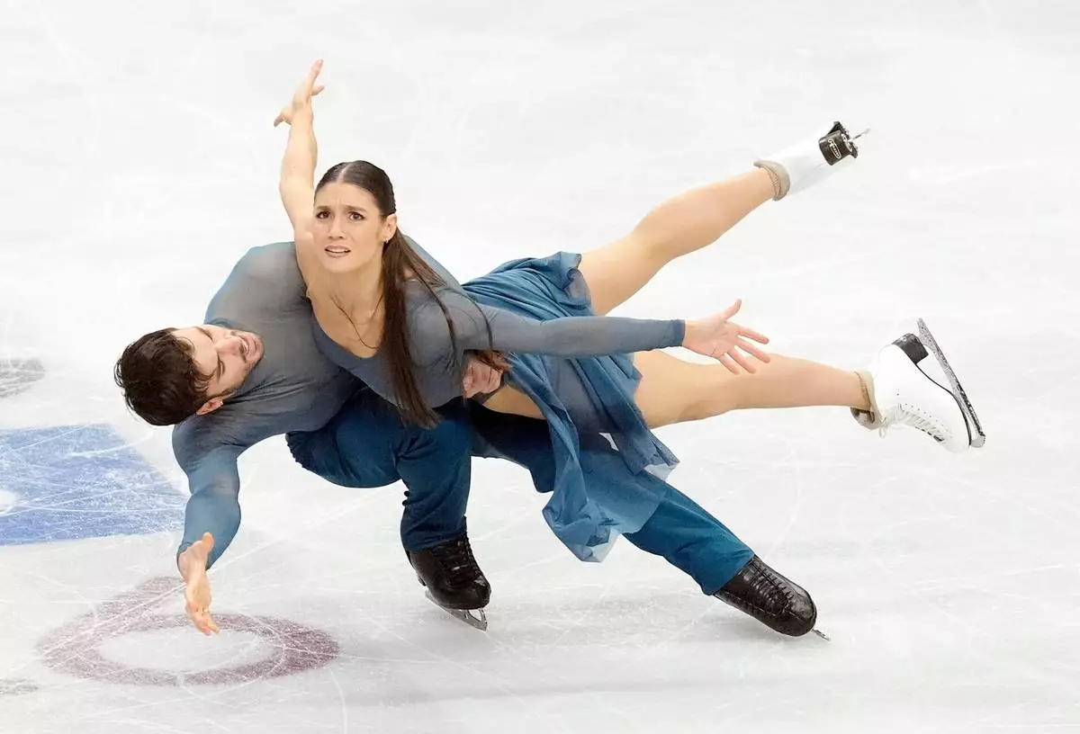 Gold medal winners France's Laurence Fournier Beaudry and Guillaume Cizeron, compete in the Ice Dance Free Dance, during day four of the ISU European Figure Skating Championships in Sheffield, Saturday, Jan. 17, 2026. (Danny Lawson/PA via AP)