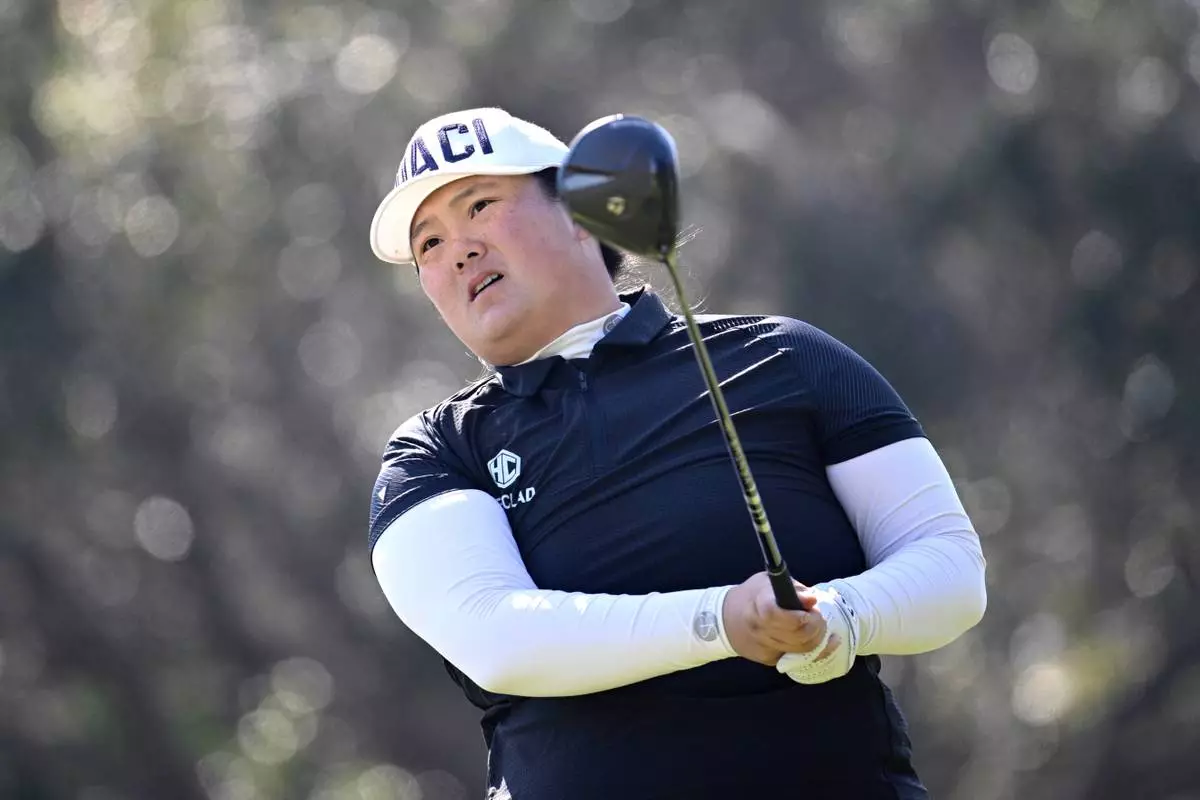 Angel Yin tees off on the second hole during the first round of the Tournament of Champions LPGA golf tournament, Thursday, Jan. 29, 2026, in Orlando, Fla. (AP Photo/Phelan M. Ebenhack)