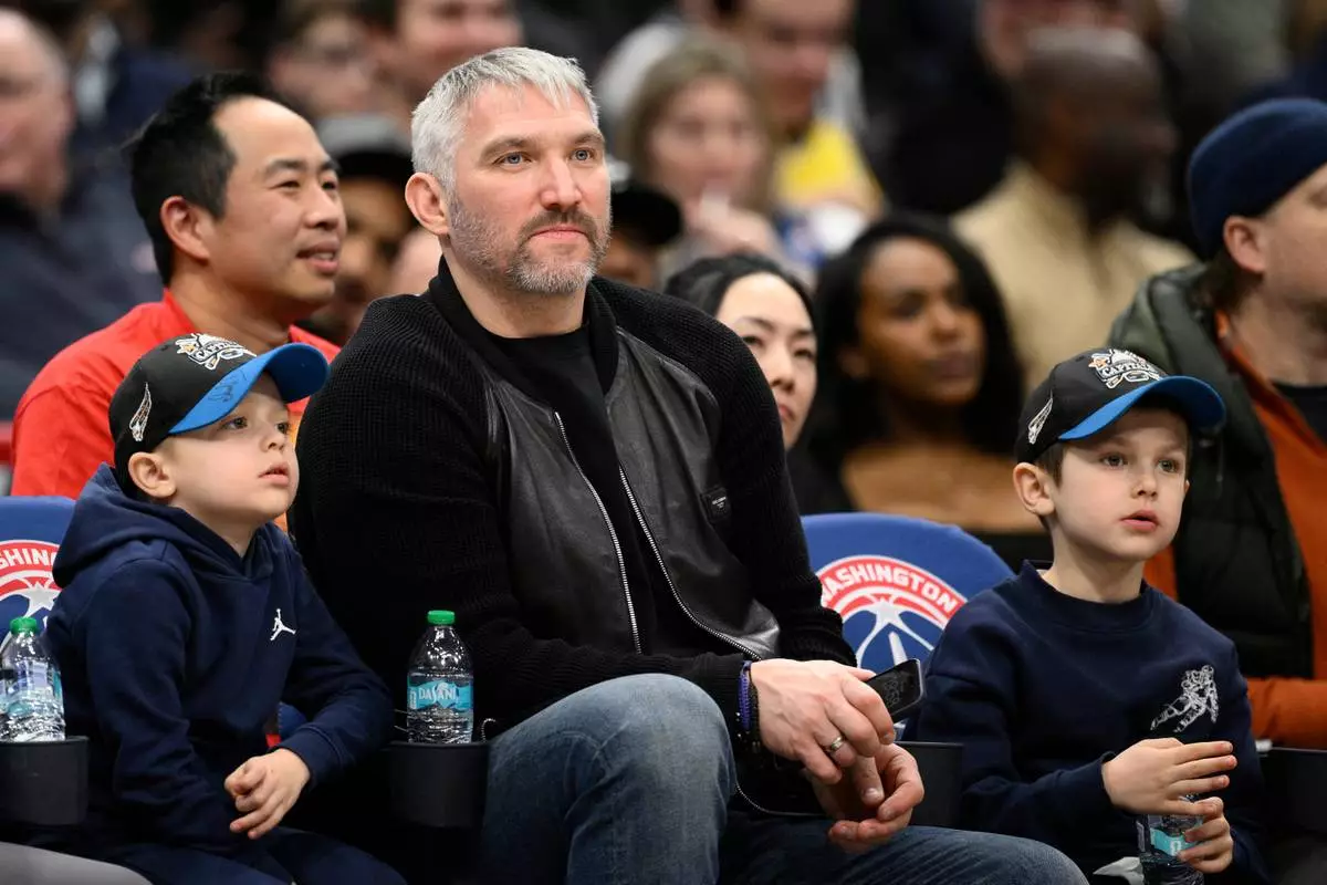 Washington Capitals hockey player Alex Ovechkin attends an NBA basketball game between the Washington Wizards and the Los Angeles Lakers, Friday, Jan. 30, 2026, in Washington. (AP Photo/Nick Wass)
