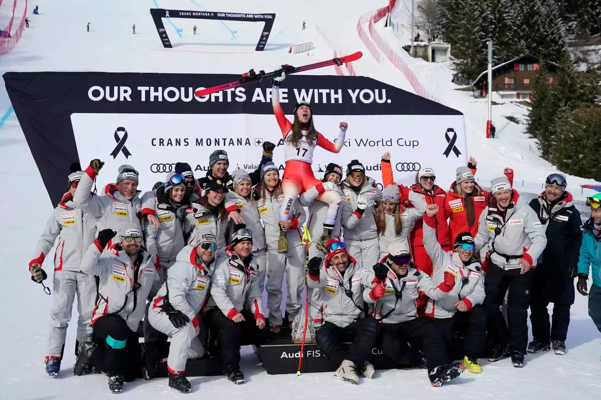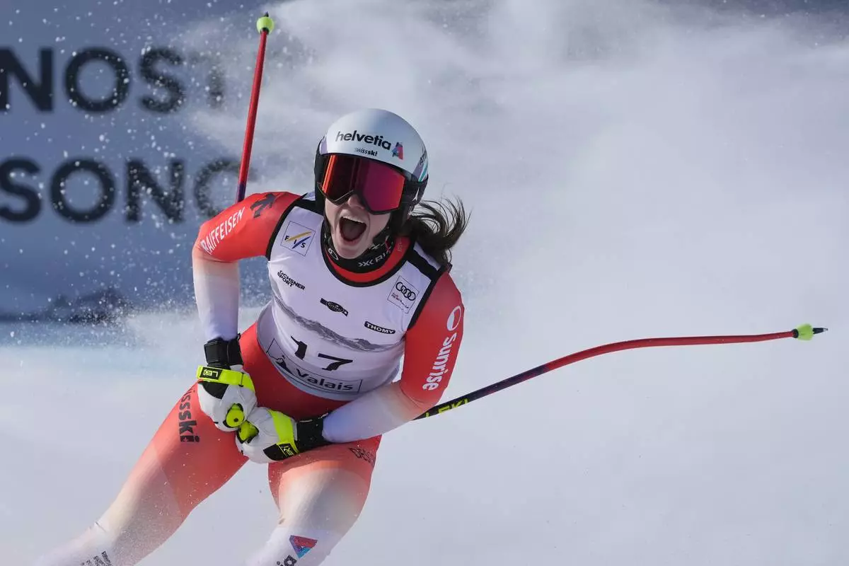 CRANS-MONTANA, Switzerland (AP) — Moving her arms like a conductor, Swiss skier Malorie Blanc stood in the leader's box and enjoyed the singing and waving of flags by her home crowd in the stands.