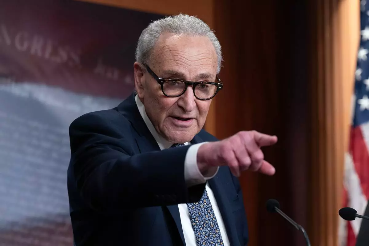 Senate Minority Leader Chuck Schumer, D-N.Y., speaks during a news conference at the Capitol in Washington, Friday, Jan. 30, 2026. The Senate voted Friday to fund most of the government through the end of September after President Donald Trump made a deal with Democrats to carve out Homeland Security funding and allow Congress to debate new restrictions on federal immigration raids across the country. (AP Photo/Jose Luis Magana)
