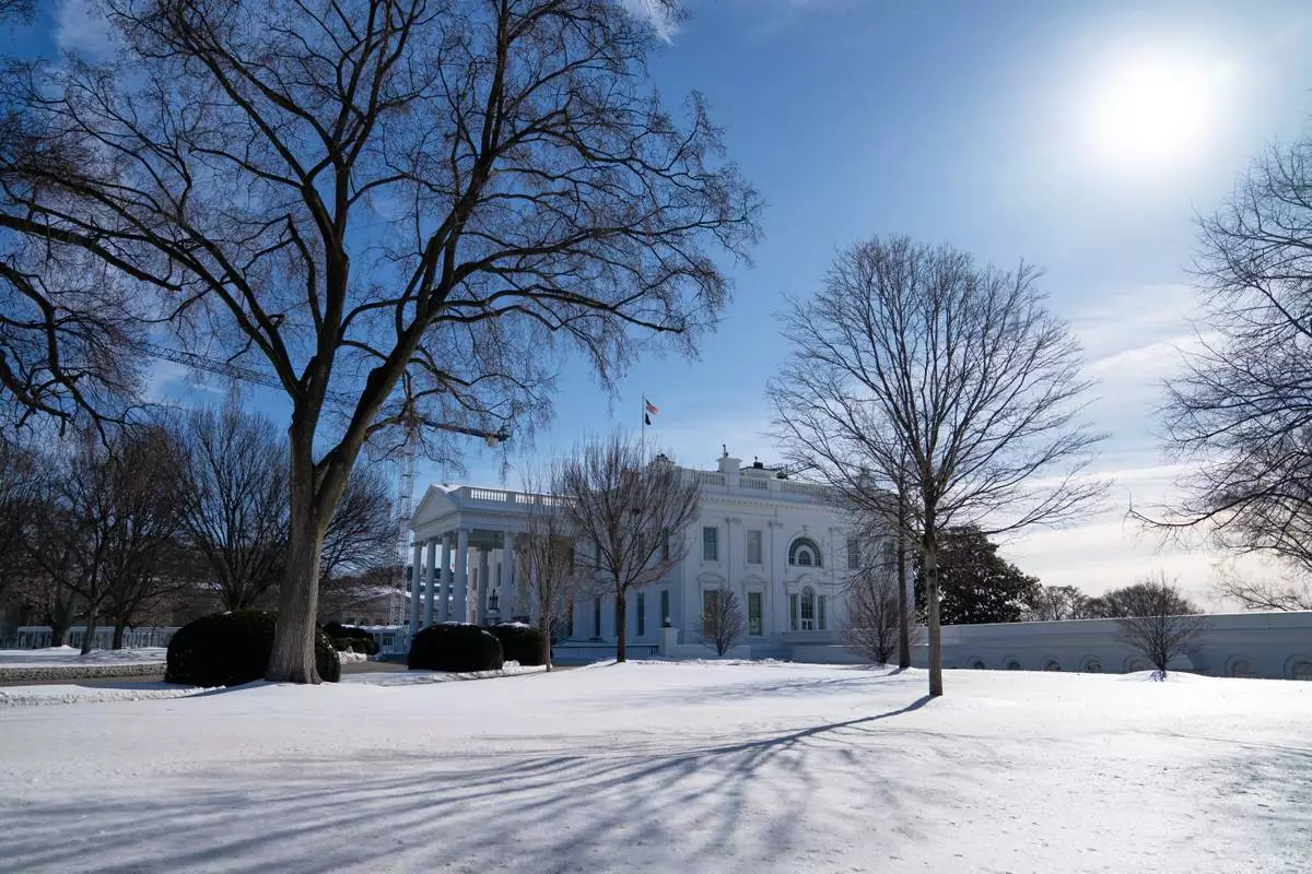 Snow covers the ground in front of the White House, Friday, Jan. 30, 2026, in Washington. (AP Photo/Allison Robbert)