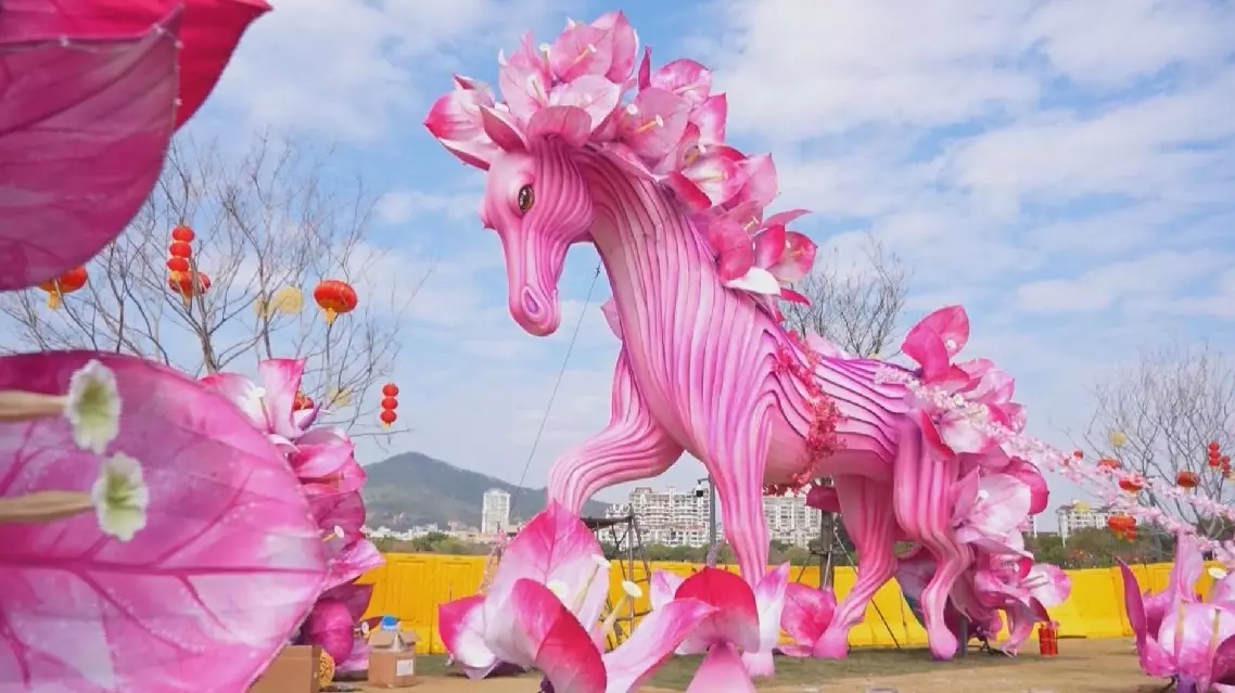 In Siming District on the city's main island, various lanterns and floral landscapes connect key urban nodes such as parks and train stations. At the south gate of the famous Zhongshan Park, a large carp lantern paired with a cute horse figure attracts eyeballs of citizens and tourists; at the north square of Xiamen Railway Station, a galloping horse-shaped lantern is sending auspicious blessings for the Year of the Horse to travelers.
