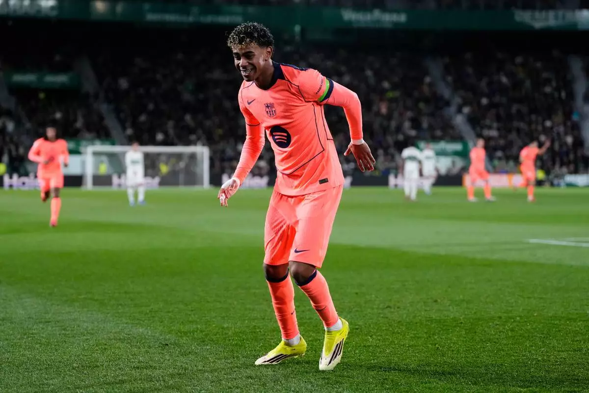 Bournemouth's Eli Junior Kroupi celebrates scoring their side's first goal of the game during the English Premier League soccer match between Wolverhampton Wanderers and AFC Bournemouth in Wolverhampton, England, Saturday, Jan. 31, 2026. (Jacob King/PA via AP)