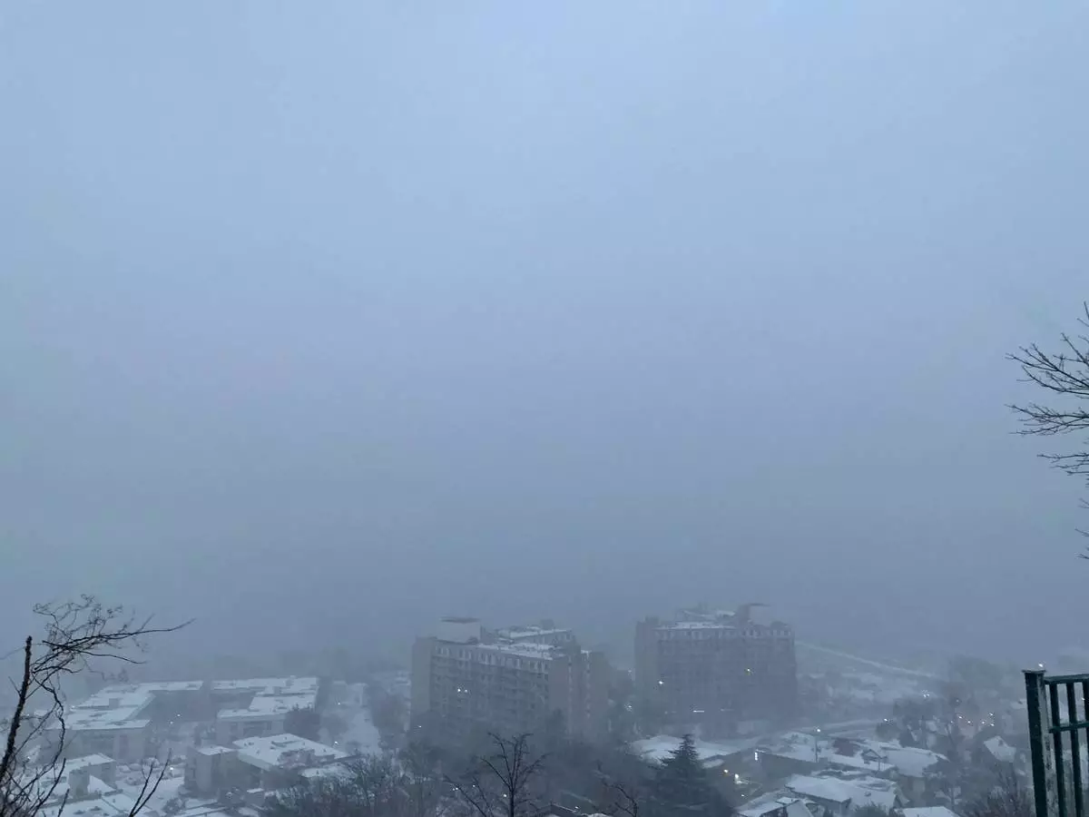 A view from the New Jersey side of the Palisades facing the George Washington Bridge shows a view of the Hudson River with limited visibility during the beginning of an intense winter storm, in Fort Lee, N.J., Sunday, Feb. 22, 2026. (AP Photo/Pablo Salinas)