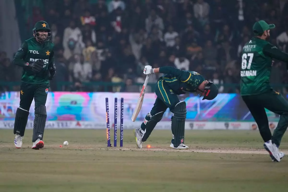 Travis Head (4) was clean-bowled for the second straight game by Saim Ayub's off-spin delivery that kept low. Fellow opener and captain Mitchell Marsh, who skipped the first T20, smashed two sixes and 18 runs but was trapped plumb lbw by Abrar in the third over.