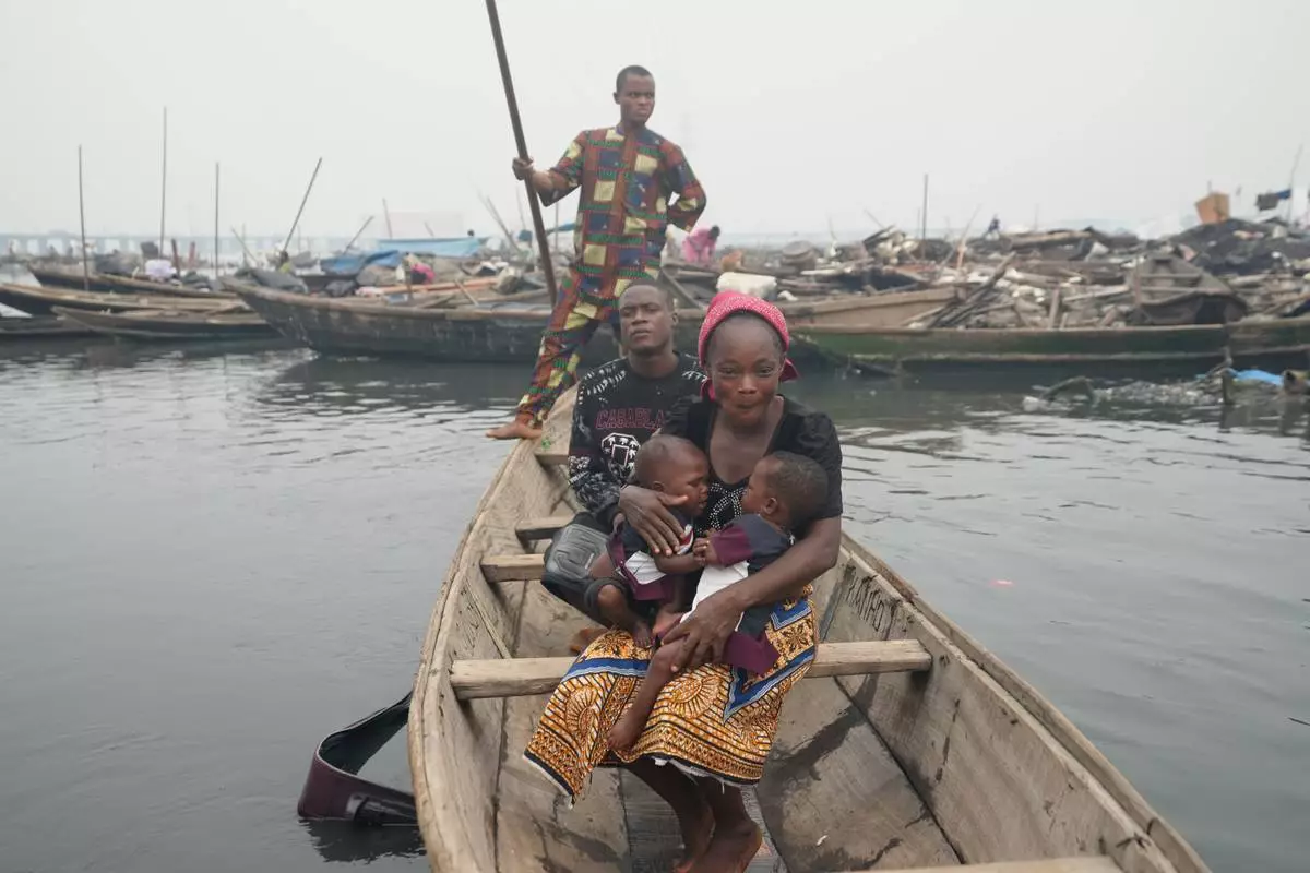 Now the 5-month-old twins and their parents live in a wooden canoe, with a woven plastic sack for shelter from the rain. The thump of hammers fills the air as other residents of Nigeria ’s largest city break down homes and salvage what they can.