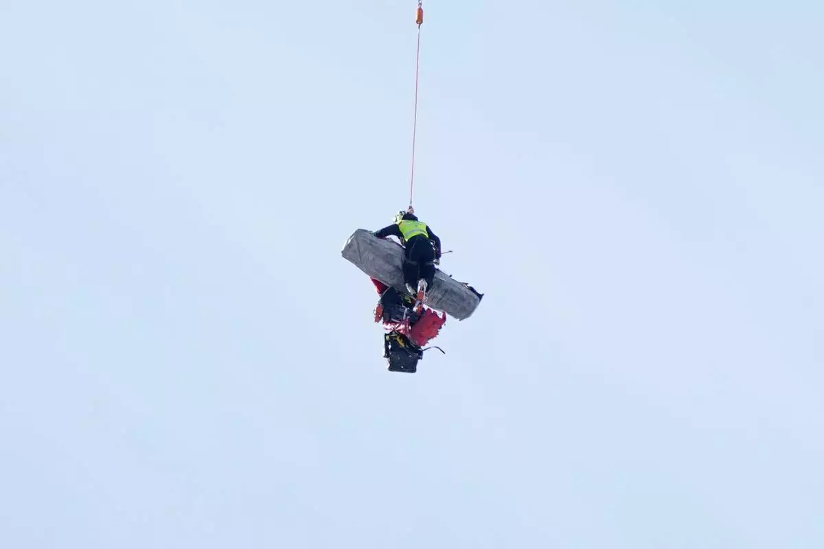 Chile's Henrik von Appen is airlifted after crashing during an alpine ski, men's World Cup downhill, in Crans Montana, Switzerland, Sunday, Feb. 1, 2026. (AP Photo/Giovanni Auletta)