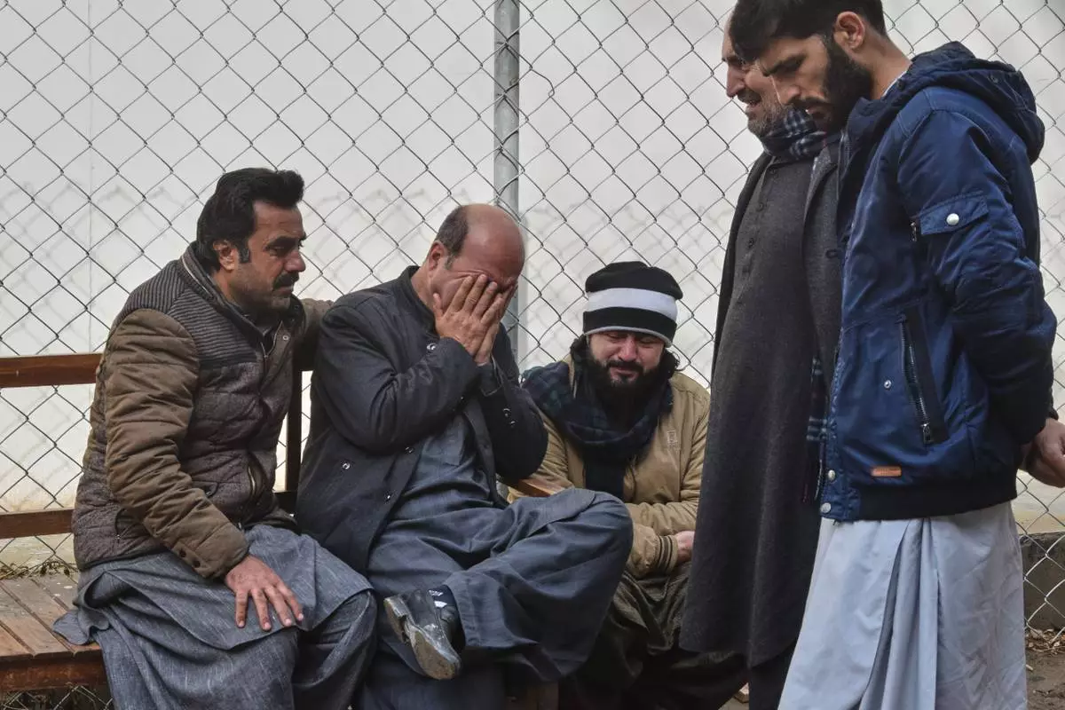 Relatives of police officers who were killed in a militants attack, mourn outside a hospital in Quetta, Pakistan, Saturday, Jan. 31, 2026. (AP Photo/Arshad Butt)