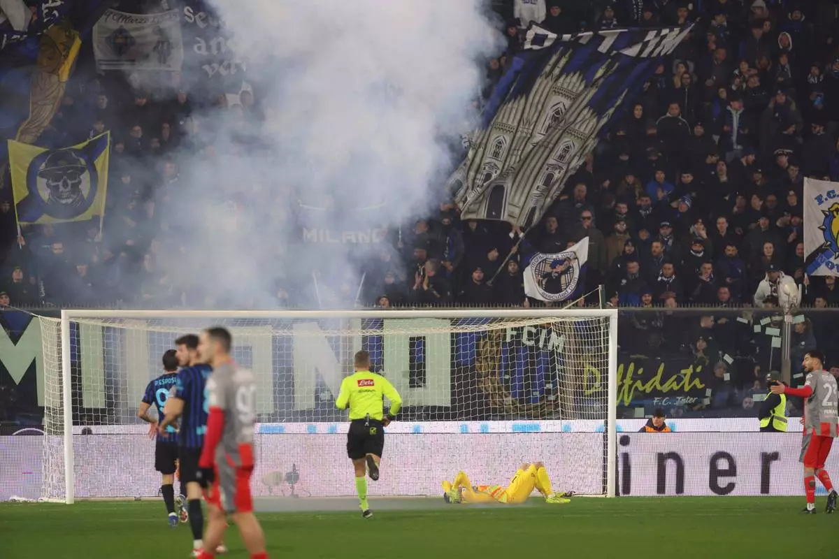 The incident happened at the start of the second half. Play was in the middle of the field when a flare was thrown from the away fans sector into the penalty area, striking Audero.