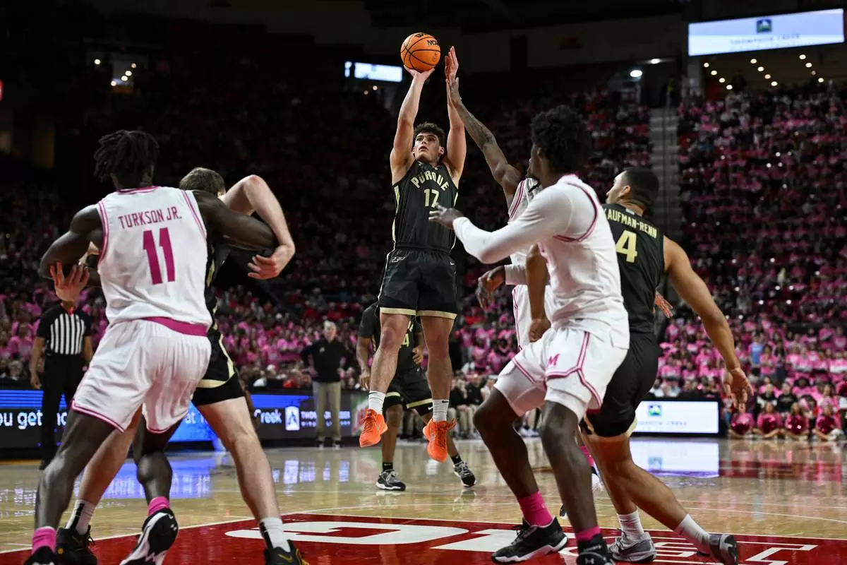 COLLEGE PARK, Md. (AP) — Fletcher Loyer and Braden Smith gave No. 12 Purdue a commanding lead with an early 3-point barrage, and the Boilermakers snapped a three-game losing streak with a 93-63 victory over Maryland on Sunday.