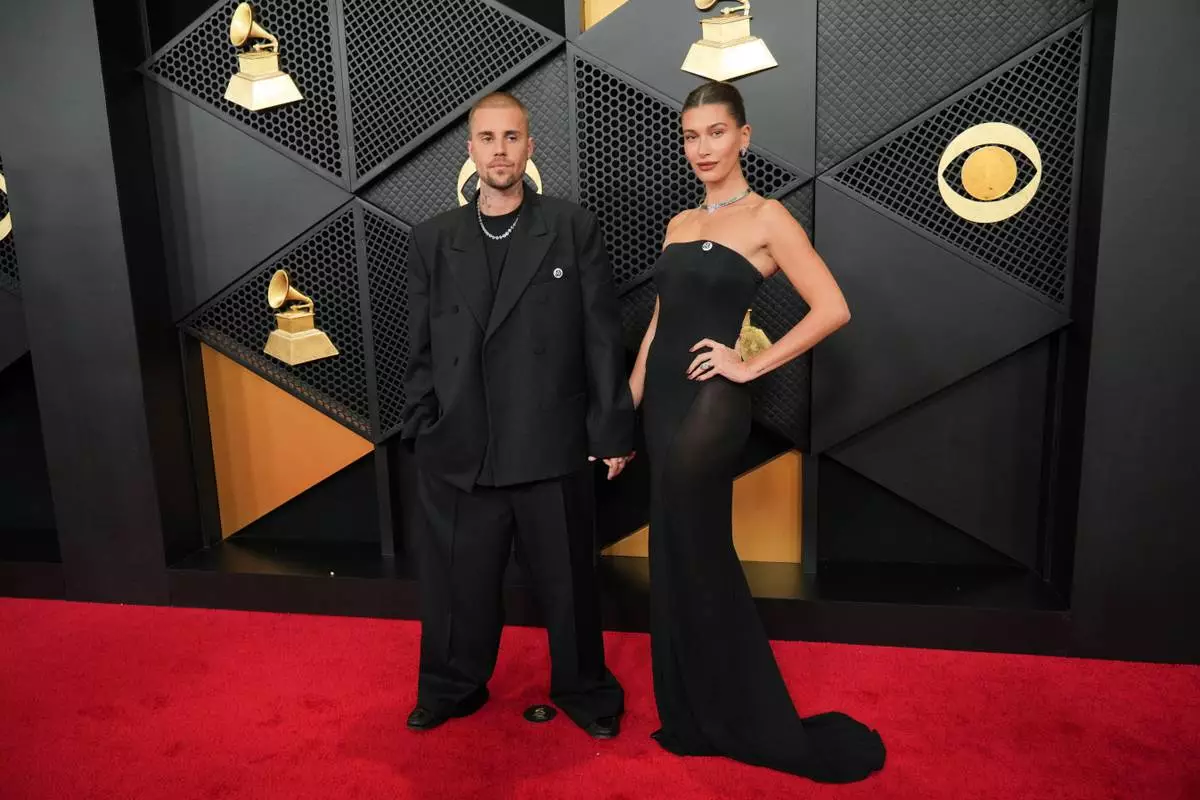 Justin Bieber, left, and Hailey Bieber arrive at the 68th annual Grammy Awards on Sunday, Feb. 1, 2026, in Los Angeles. (Photo by Jordan Strauss/Invision/AP)