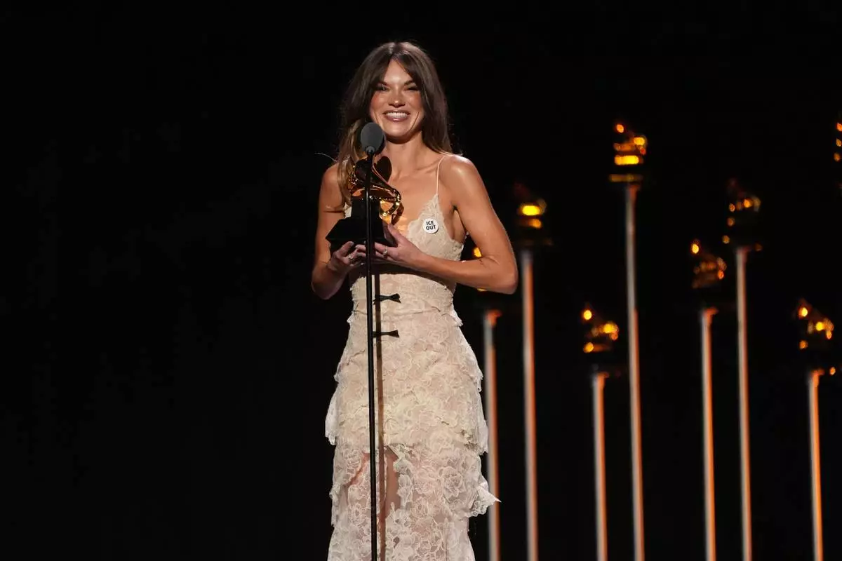 Amy Allen accepts the award for songwriter of the year, non‑classical during the 68th annual Grammy Awards on Sunday, Feb. 1, 2026, in Los Angeles. (AP Photo/Chris Pizzello)
