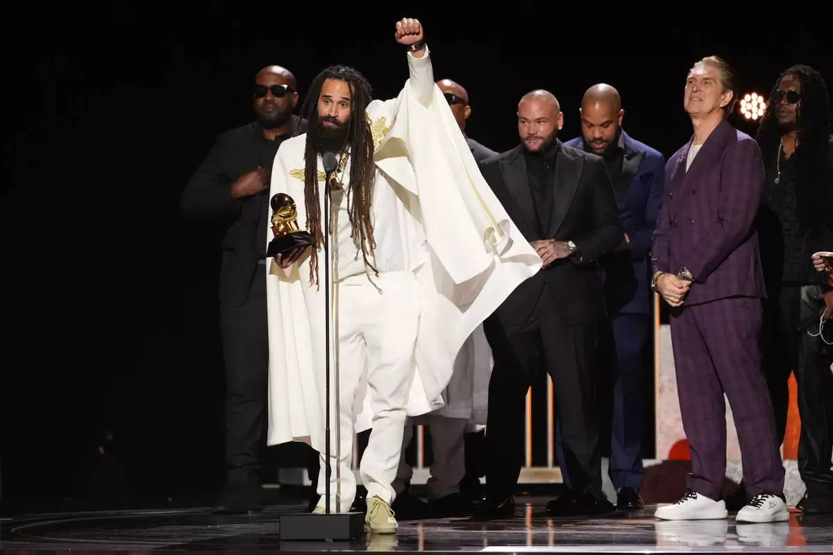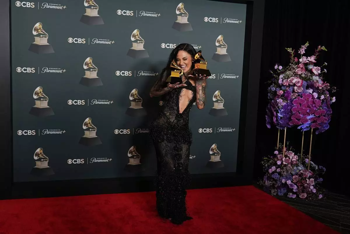 Kehlani accepts the award for best R&B performance for "Folded" during the 68th annual Grammy Awards on Sunday, Feb. 1, 2026, in Los Angeles. (AP Photo/Chris Pizzello)