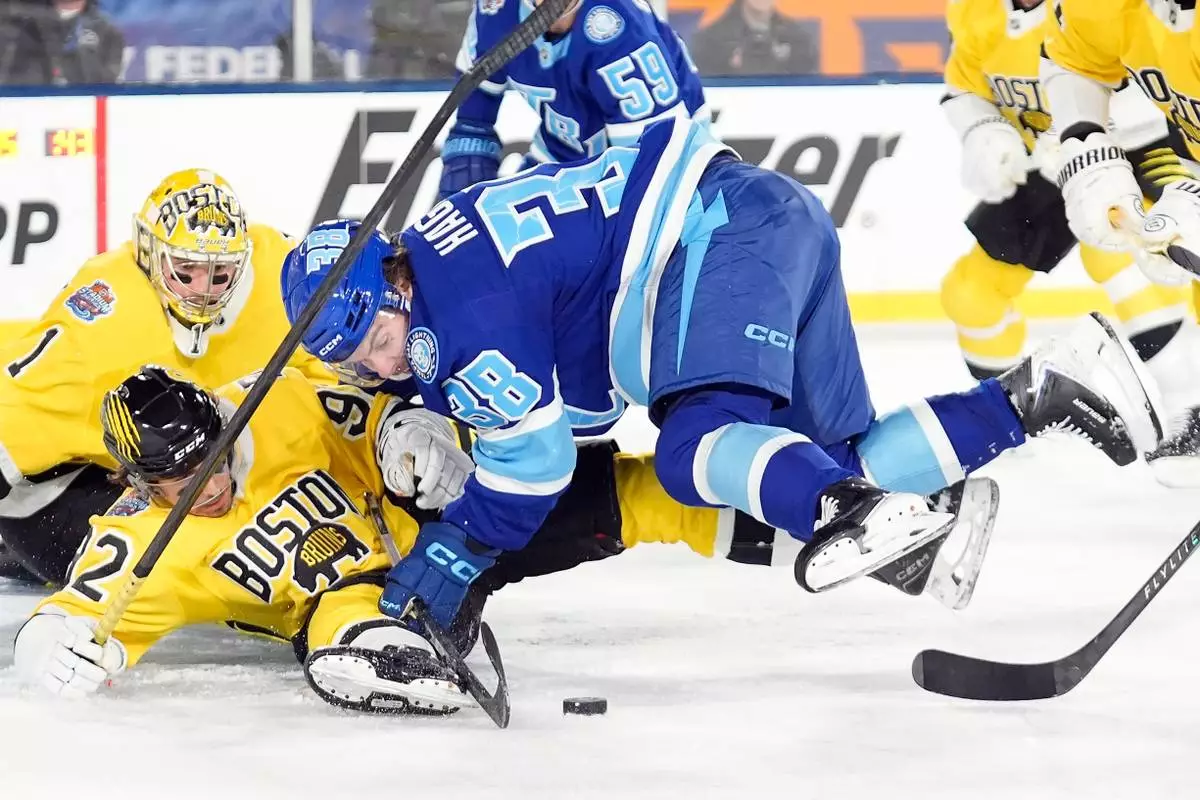 The game featured the first goalie fight in outdoor game history when Vasilevskiy and Swayman exchanged blows at center ice in the second period.