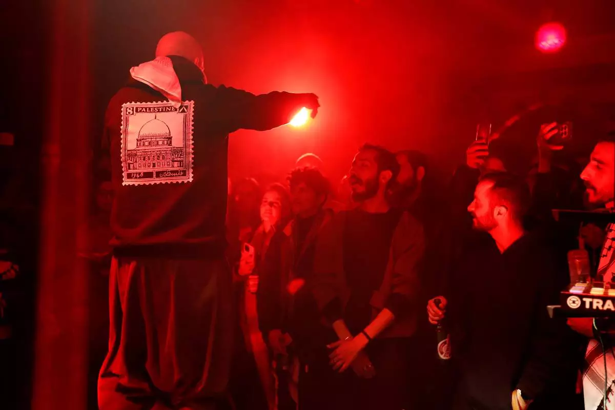 Hani Al Sawah, a Syrian rap artist known as Al Darwish, performs at a restaurant in old Damascus, Syria, Friday, Jan. 16, 2026. (AP Photo/Omar Sanadiki)