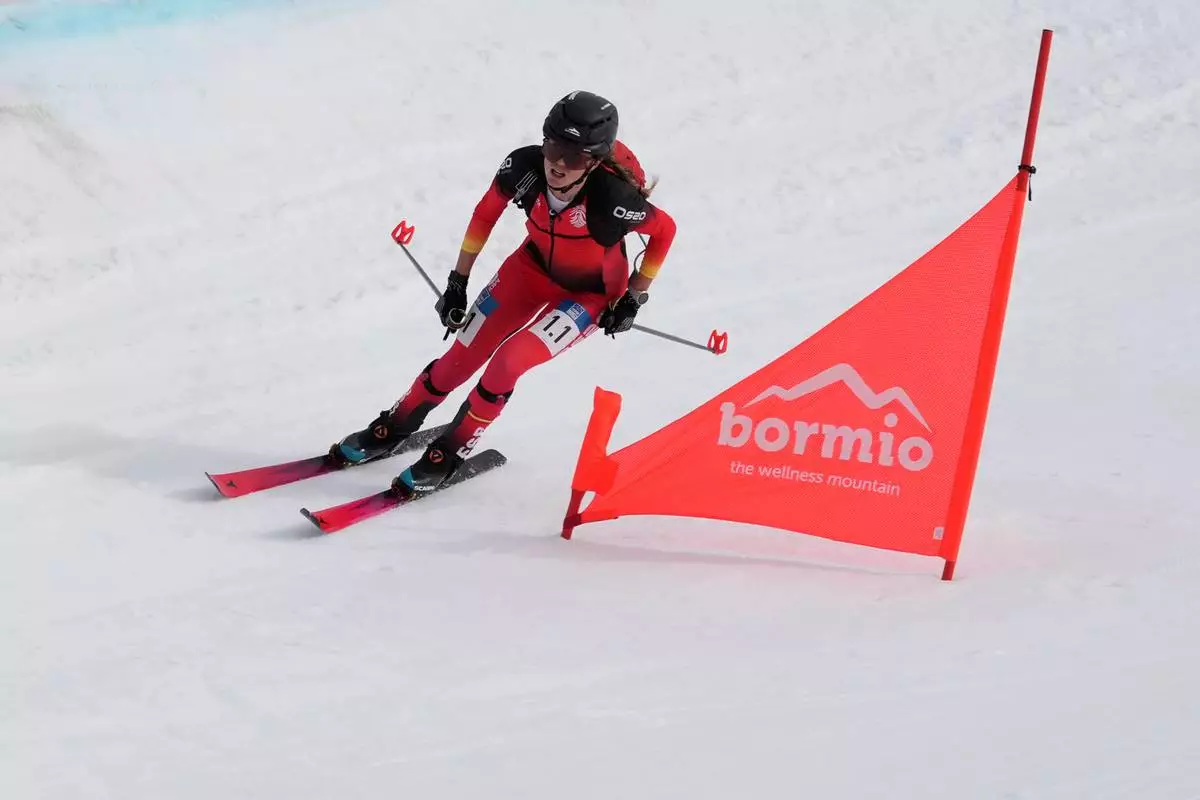 FILE - Spain's Ana Alonso Rodriguez competes during the women's mixed relay race at the Ski Mountaineering World Cup event in Bormio, Italy, Feb. 23, 2025. (AP Photo/Antonio Calanni, File)