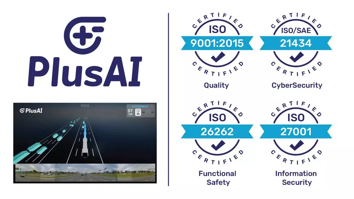 PlusAI, a leader in AI-based virtual driver software for autonomous trucks, today announced it has achieved four internationally recognized ISO certifications, marking a definitive milestone in its transition to a market-ready autonomous powerhouse. This "quadruple" certification in quality (ISO 9001), cybersecurity (ISO/SAE 21434), functional safety (ISO 26262), and data security (ISO 27001) formally validates PlusAI’s operational maturity. This achievement, paired with the company's recent 90.1% Safety Case Readiness (SCR) milestone, establishes a clear, de-risked path for the targeted 2027 launch of factory-built autonomous trucks with global OEM partners.