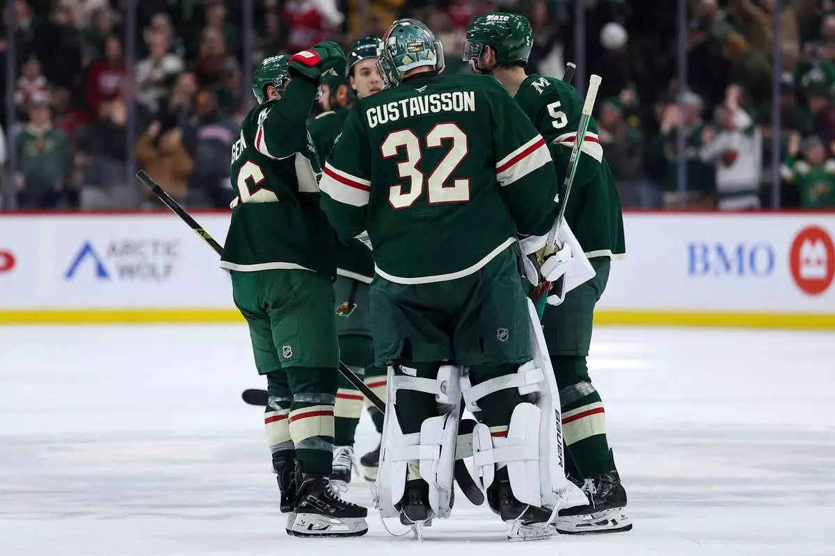 Joel Eriksson Ek and Brock Faber also scored, and Hughes had three assists to reach 50 for the season. Filip Gustavsson made 17 saves.