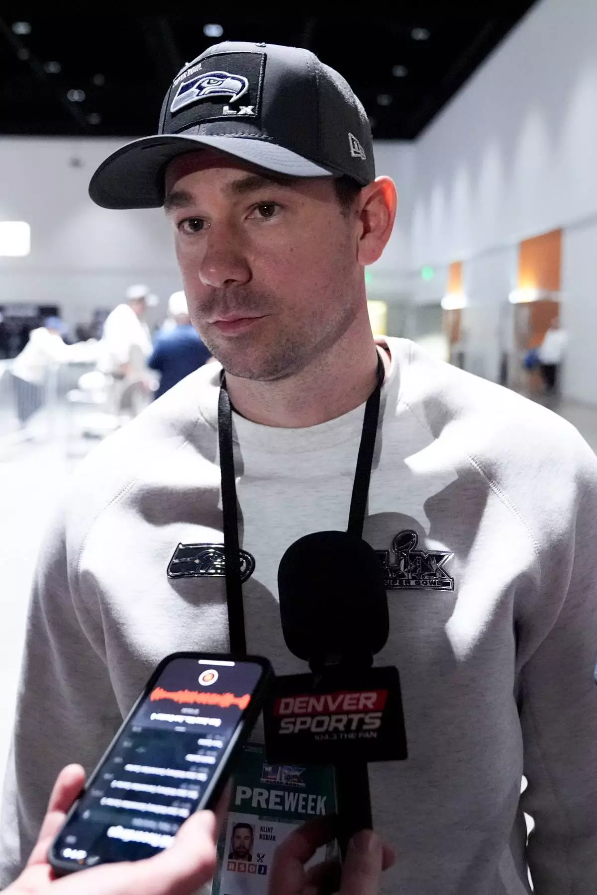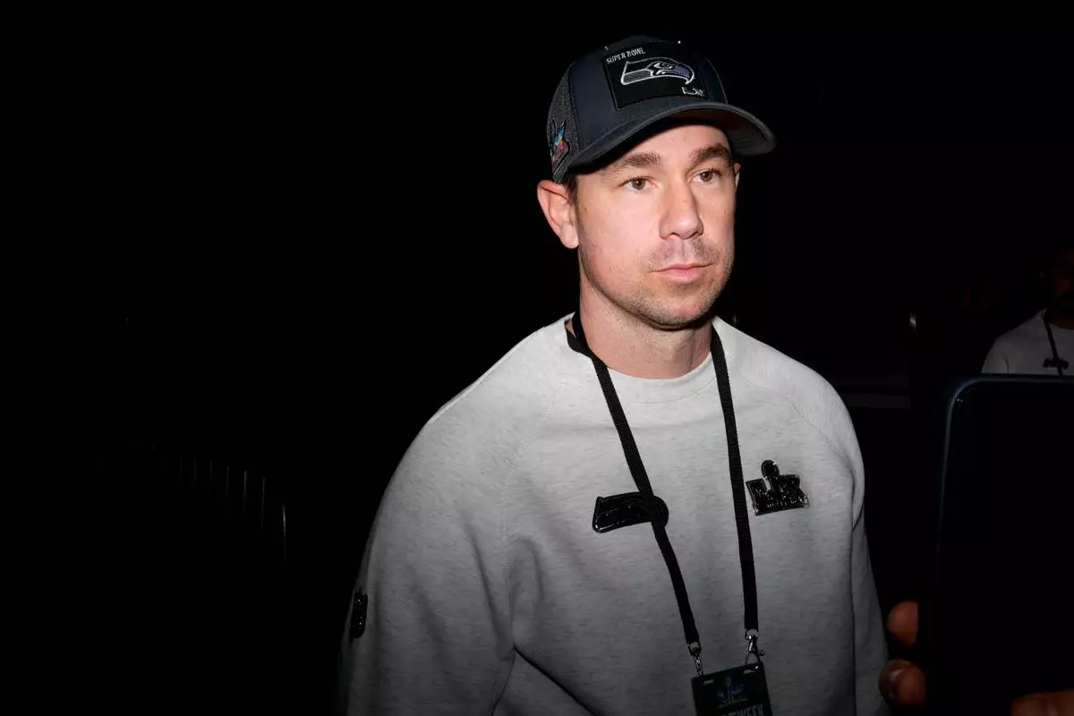 Seattle Seahawks offensive coordinator Klint Kubiak speaks during the NFL Super Bowl Opening Night, Monday, Feb. 2, 2026, in San Jose, Calif. ahead of the Super Bowl 60 football game between the New England Patriots and the Seattle Seahawks. (AP Photo/Brynn Anderson)