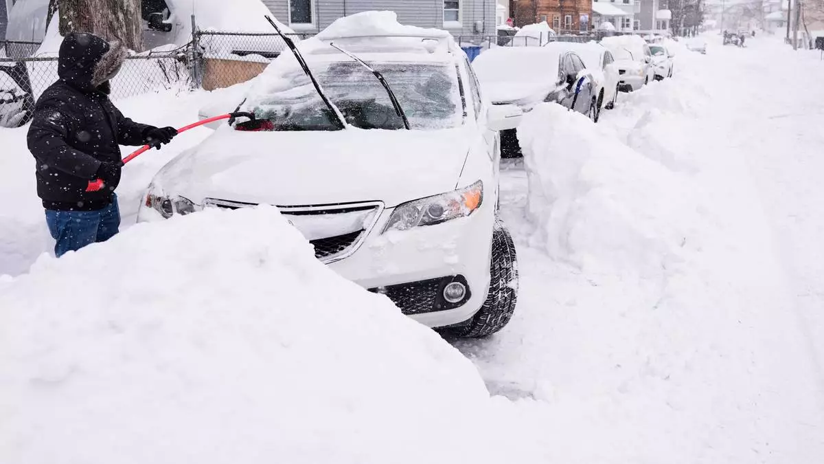 FILE - Rafael Tavares digs his car, which was encased about 20 inches of snow, during a winter storm Jan. 26, 2026, in Lawrence, Mass. (AP Photo/Charles Krupa, File)