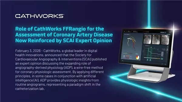 NEWPORT BEACH, Calif., Feb. 4, 2026 /PRNewswire/ -- CathWorks, a global leader in digital health innovations, announced that the Society for Cardiovascular Angiography & Interventions (SCAI) published an expert opinion discussing the expanding role of angiography-derived physiology (ADP), a wire-free method for coronary physiologic assessment. By applying different principles, in some cases in conjunction with artificial intelligence (AI), ADP provides physiologic insights from routine angiograms, representing a paradigm shift in the catheterization lab.