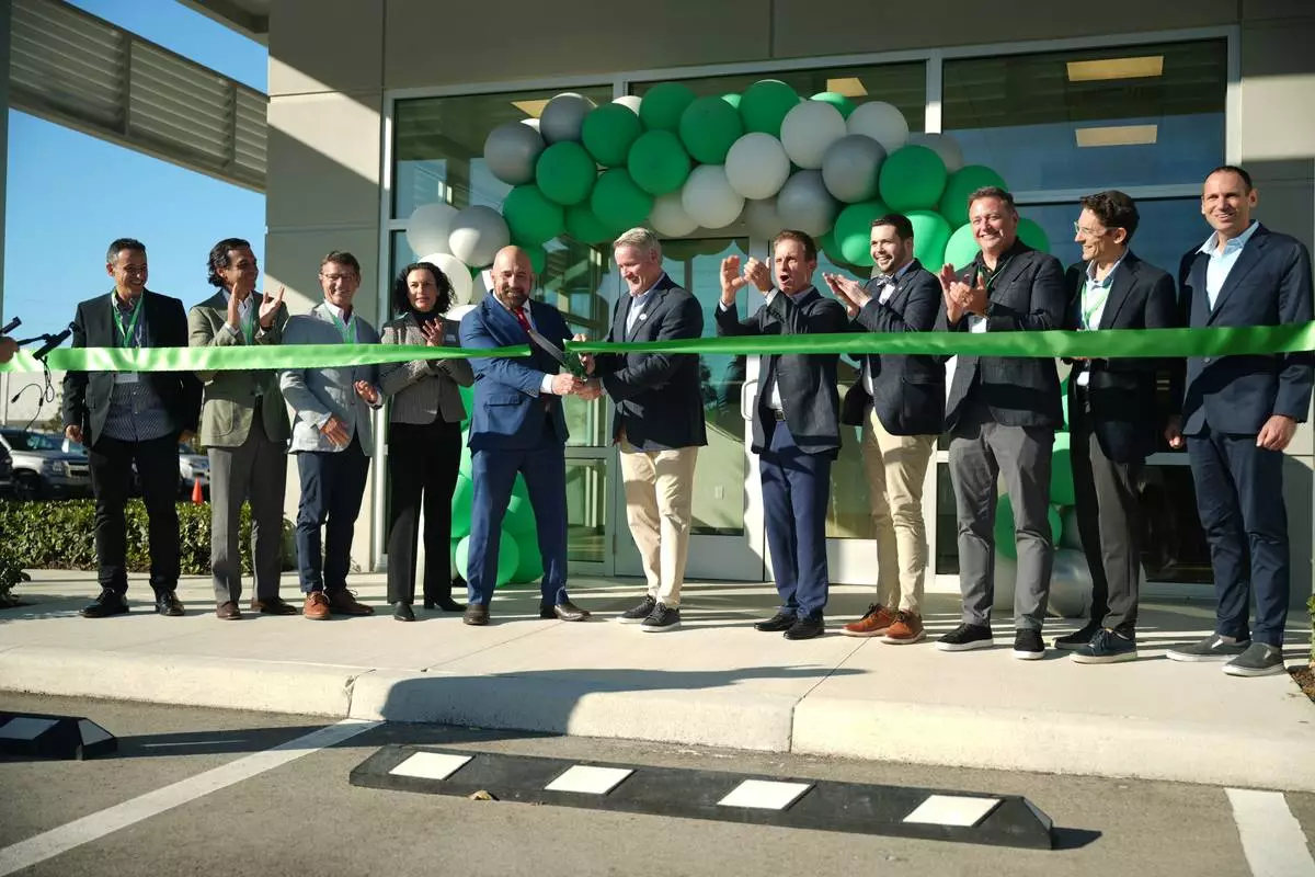 Employees of orthopedic medical technology company OSSIO celebrate opening of company's new U.S. headquarters in Palmetto, Florida.