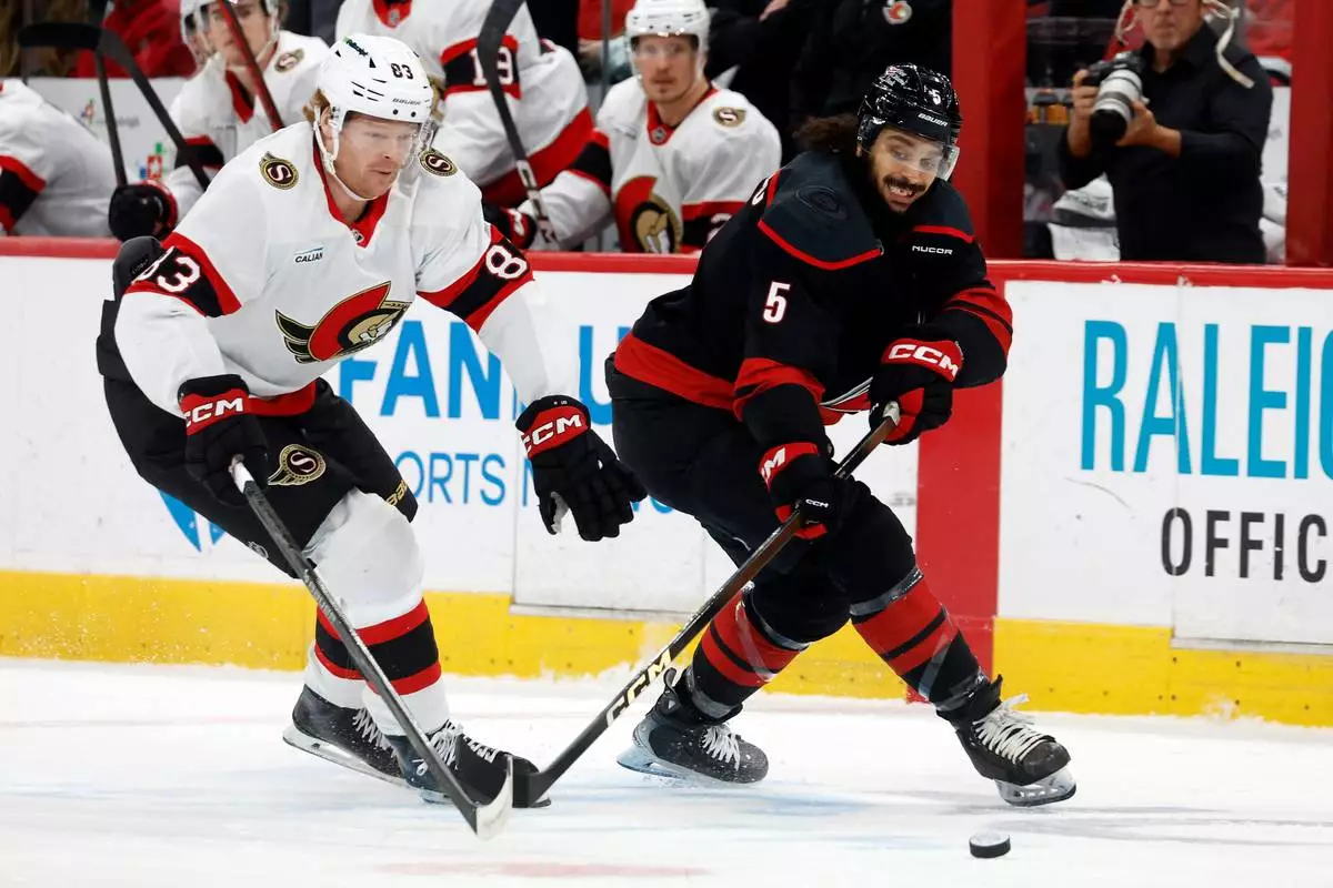Sanderson blasted a one-timer to tie the game at 3 early in the third for the Senators, who got on the board less than 3 minutes in with Stephen Halliday's redirection from the edge of the crease. Tim Stutzle also scored on the power play late in the second, a critical goal coming less than a minute after Jarvis' second score pushed Carolina to a 3-1 lead.