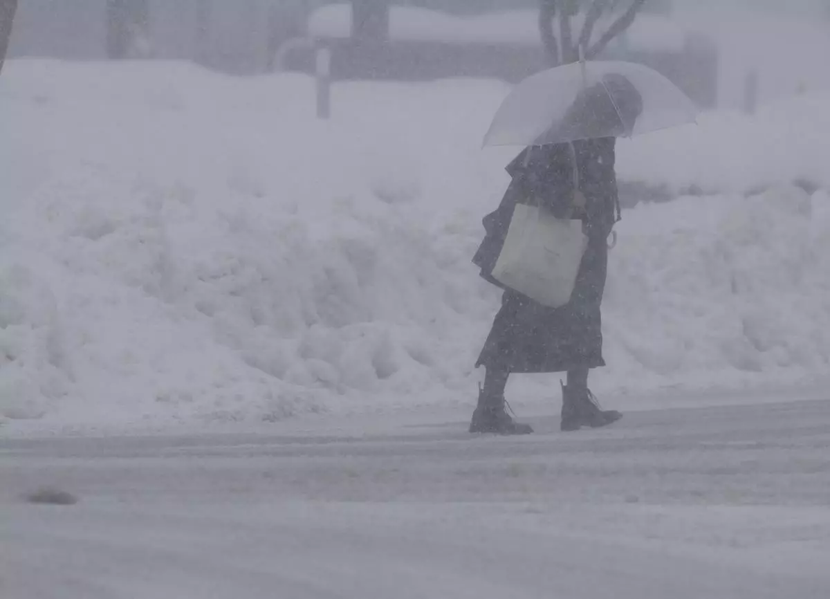 People walk in a snow in Kanazawa, Ishikawa prefecture, Japan, on Jan. 23, 2026. (Kazushi Kurihara/Kyodo News via AP)
