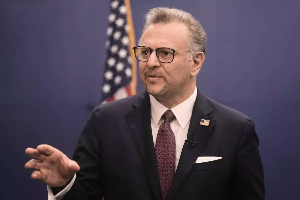 FILE - Massad Boulos, senior advisor to President Donald Trump, speaks during an interview with the Associated Press at the United States' embassy in Cairo, Egypt, Monday, Nov. 3, 2025. (AP Photo/Amr Nabil, File)